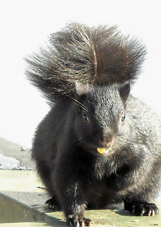 It was quiet on the squirrel front today with all the snow. Missy wasn't about, so Jackie took on the job of patrolling the seed area. Only her beau was allowed to eat without being harassed. Honey was harassed, but then Jackie wasn't fond of her inside either. And she even made Oscar root through the snow raiding other squirrel's cache's rather than allow him on deck if she saw him. When her back was turned or she was up a tree eating, the deck's seed trays were raided by the others.
